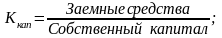 5. Коэффициент капитализации (плечо финансового рычага) (Kкап) показывает, сколько заемных средств организация привлекла на 1 рубль вложенных в активы собственных средств, нормальное ограничение не выше 1,5: