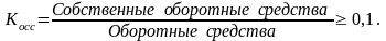 1. Обеспеченность оборотных средств собственными источниками или коэффициент обеспеченности собственными оборотными средствами (19):