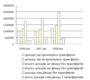 Розглянемо виконання бюджету за доходами Харківської області у 2008 році в таблиці 2.1. Отже, доходи, що враховуються при визначенні міжбюджетних трансфертів виконані на 97,8%, при плані затвердженому місцевими радами з урахуванням змін 1236,6 млн.грн. фактично надійшло 1209,6 млн.грн., тобто менше на 27,0 млн.грн. Невиконані планові показники затверджені місцевими радами в 5 містах області: м.Харків – 93,6%, м.Ізюм – 98,2%, м.Куп’янськ – 99,7%, м.Лозова – 97,8%, м.Чугуїв – 94,8% та Великобурлуцькому району – 93,5%.