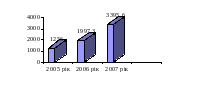 При порівнянні двох останнього років (2006 і 2007) виявлено, що обсяг реалізації збільшився на 70% (170% - 100%). Середньорічний темп приросту становить 64%. Для більшої наочності динаміка реалізації продукції зображена на графіку (рис.2.1.)