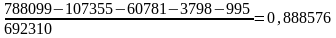 Чистий обіговий кап. на 2006 = 788099 - 692310 = 95789