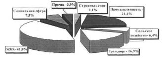 В структуре инвестиций в 2008 году доля промышленности составила 21,4%, транспорта - 16,9%, ЖКХ - 41,8%, сельского хозяйства - 6,4%, социальной сферы - 7,5%), строительства - 2,1% (рис.2.1.2).