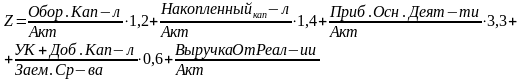 Теперь оценим вероятность банкротства предприятия с помощью модели Z-коэффициента (разработчик Эдвард Альтман).