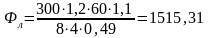 Для розрахунку загального рівномірного освітлення при горизонтальній робочій поверхні основним є метод коефіцієнта використання світлового потоку, що враховує світловий потік, відбитий від стелі й стін. Світловий потік розраховується за формулою: