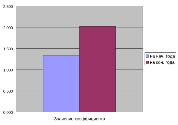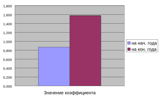 По данным таблицы видно, что коэффициент оборачиваемости активов в отчетном году увеличился на 0,657, что благоприятно повлияло на индекс кредитоспособности Альтмена. Можно заметить, что ни один коэффициент не изменился, кроме самого индекса кредитоспособности.