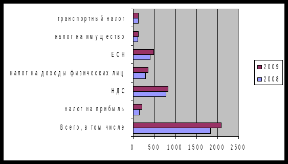 Для наглядности структуры и динамики налоговых платежей ООО «Триэс - Новосибирск» за период 2008 – 2009 г.г. представим в виде гистограммы (рис. 2.2).