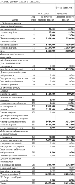 Таблиця 2.5 Баланси ЗАТ СП з ІІ "КИПАРИС '' за 2001 2002 роки