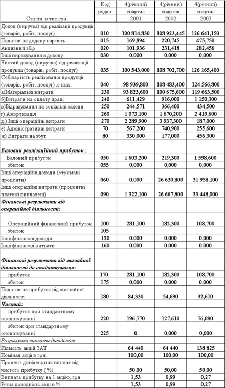 Таблиця 2.7 – Звіти про фінансові результати діяльності ЗАТ СП з ІІ "КИПАРИС" за 2001 – 2003 роки