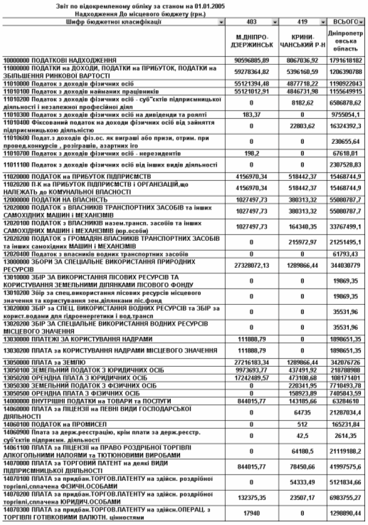 Планова сума доходів місцевих бюджетів Дніпропетровської області на 2005 рік складає 2 055 203,42 тис.грн., планова сума доходів держбюджету з Дніпропетровської області становить 3 990 965,4 тис.грн..