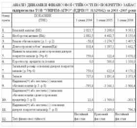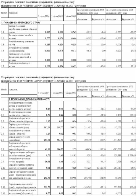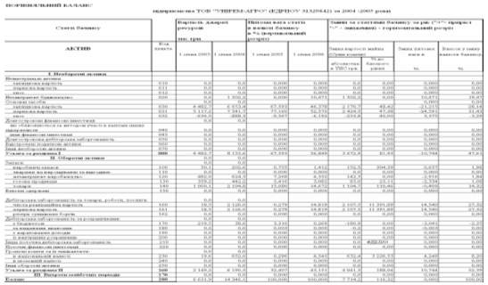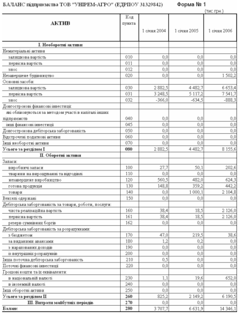 Таблиця В.1 Баланси сільгосп-підприємства ТОВ «УНІРЕМАГРО» за 2003 – 2005 роки