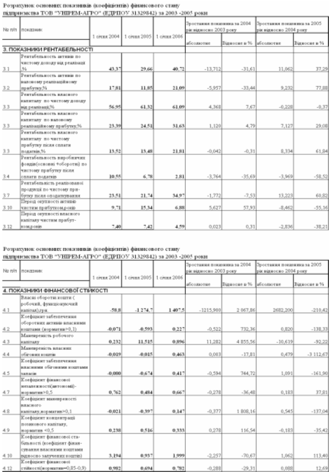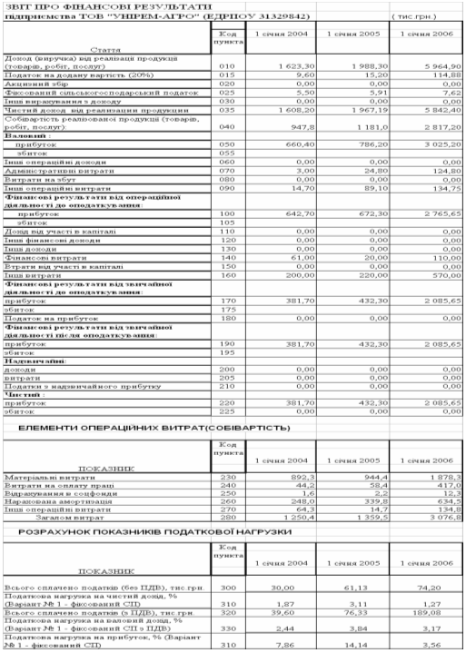 Таблиця В.2 Звіти про фінансові результати сільгосппідприємства ТОВ “УНІРЕМАГРО” за 2003 – 2005 роки