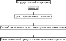 Инвестиционный процесс государственного посредника строится на основе инвестиционной стратегии, разрабатываемой с использованием различных финансово-экономических методов, которые в совокупности составляют научно-финансовую методологию формирования его инвестиционной стратегии. Таким образом, инвестиционная стратегия государственного посредника разрабатывается в соответствии с целями его функционирования. В этой связи все корпоративные инвестиции должны рассматриваться как один из основных способов достижения его главной цели - получение расчетной прибыли (рис. 3.5).