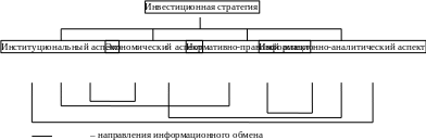 Описание инвестиционной стратегии, как и любого многогранного понятия, не исчерпывается лишь простым определением. Инвестиционная стратегия, по нашему мнению, является структурированной совокупностью нескольких взаимосвязанных аспектов, таких как: институциональный, экономический, нормативно-правовой, информационно-аналитический и другие (рис. 3.6).