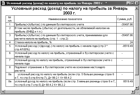 Рис. 2.8. Расчет условного расхода (дохода) по налогу на прибыль.