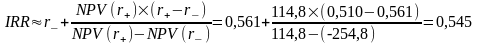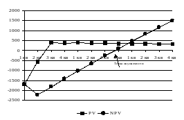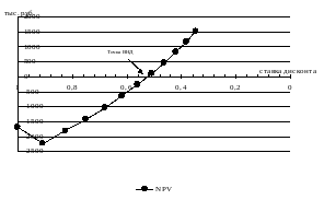 Внутренняя норма доходности определяется графически (см. Error: Reference source not found) на основании формулы. Изменения внутренней нормы доходности, так же можно отразить на диаграмме (см. рис.5):