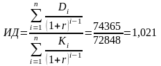 Индекс доходности для данного инвестиционного решения равен: