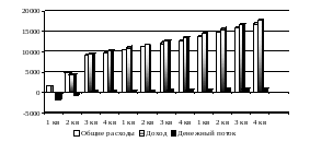 На основании определения чистого денежного потока найдем показатели срока окупаемости, доходности, рентабельности и внутреннюю норму доходности предлагаемого инвестиционного решения. Срок окупаемости находится на основании графика дисконтированного денежного потока (см. рис.4) по стандартной формуле, применительно к нашему проекту:
