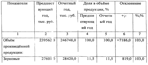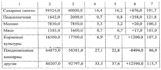 | 1. Производств продукции в натуральном выражении: а) растениеводство, ц б) животноводство, тонн | 271550,00 8721,00 | 279035,00 8847,00 | +7485,00 +126,00 | 102,80 101,40 | ||||