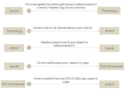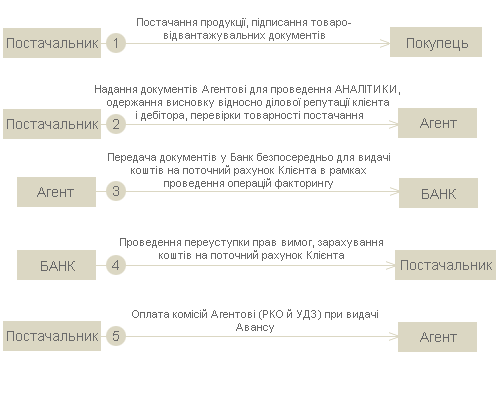 Факторингове обслуговування відбувається в наступній послідовності: