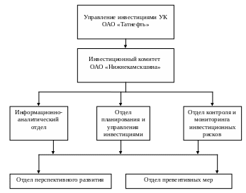 Сегодня эффективность инвестиционной деятельности промышленного предприятия в значительной степени зависит от организации управления инвестиционной деятельностью в компании. Принятие решений об инвестициях является наиболее сложной и важной задачей управления, в связи с чем возникает необходимость интеграции деятельности всех участников процесса управления инвестиционной деятельностью компании, которую возможно реализовать только через единую структуру управления инвестициями в рамках существующей организационной структуры управления [48.С.127].