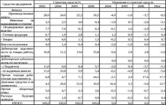 Анализ структуры оборотных активов