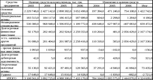 Не смотря на увеличение размера основных средств (на 1 422 742 тыс. грн. за 2004-2006гг.), удельный вес их в составе основного капитала снизился на 22,5%. Уменьшение стоимости незавершенного строительства и увеличение стоимости основных средств 2006г. свидетельствует о том, что в данный период на ОАО «ММК им. Ильича» были введены в эксплуатацию новые производственные мощности, произведена реконструкция старых производственных мощностей. В структуре активов ОАО «ММК им. Ильича» удельный вес необоротных активов составляет в среднем 58%. Это свидетельствует о том, что акционерное общество имеет «тяжелую» структуру активов, т.е. о значительных накладных расходах и высокой чувствительности к изменению выручки.