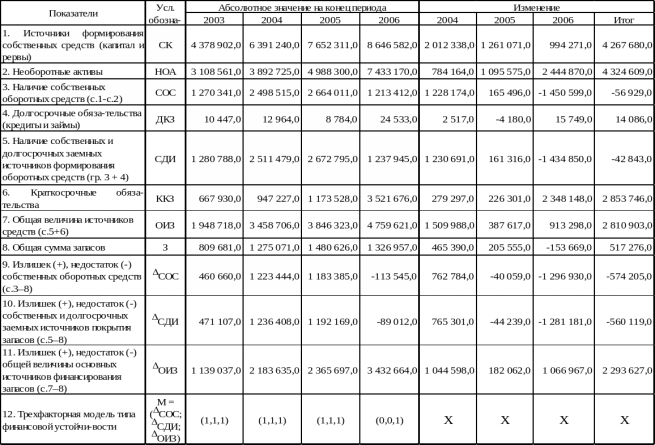 Абсолютные показатели финансовой устойчивости