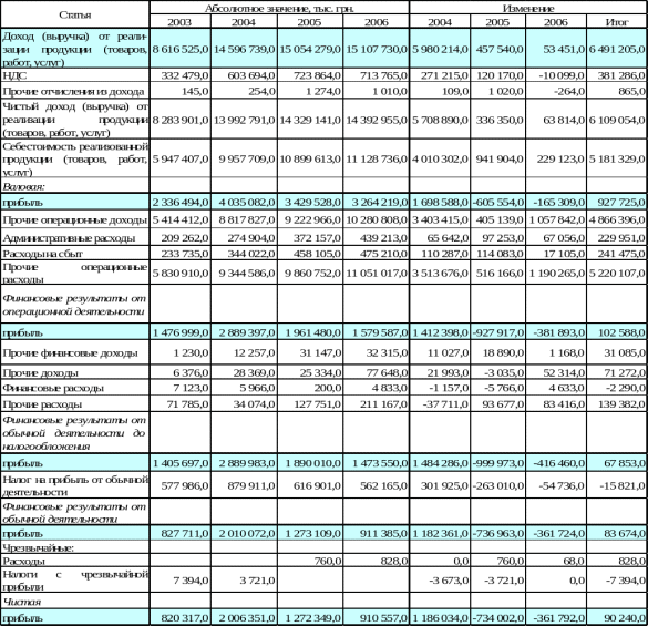 Увеличение в течение 2004-2006гг. суммы финансовых и прочих доходов на 102 357 тыс. грн. также не дало положительного результата вследствие увеличения прочих расходов на 139 382 тыс. грн.