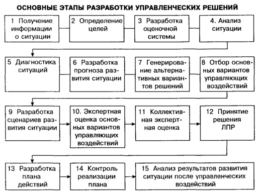 В приведенной выше укрупненной блок-схеме представлены основные этапы принятия решения и их технологическая последовательность.