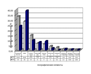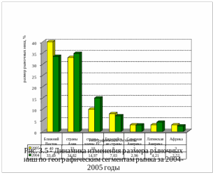 Распределение объемов экспорта в 2005 году по сегментам мирового рынка представлено на рис. 3.5.