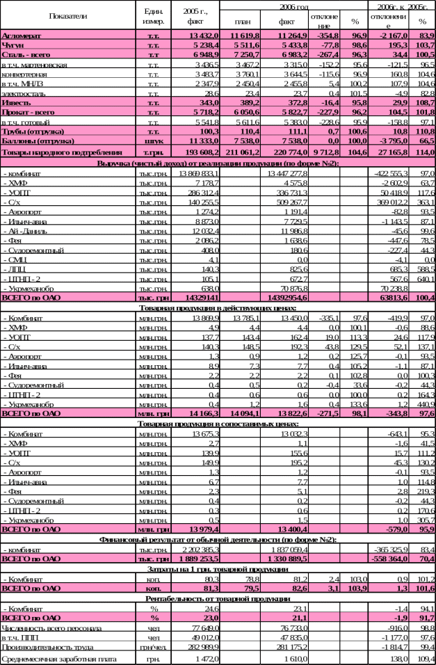 В 2006 году ОАО «ММК им. Ильича» не смог достичь намеченных в целом на год объемов производства.