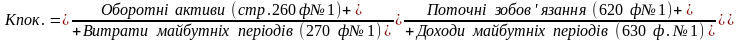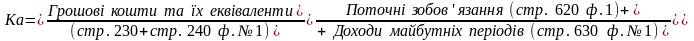 Коефіцієнт термінової ліквідності розраховується за формулою: