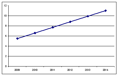Рис. 2.3 - Прогнозований приросту фінансування в 2009 -2014 роках (в %)