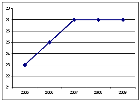 За інформаційну базу для аналізу закономірностей розвитку і прогнозування візьмемо дані про кількість установ держуправління протягом 2005-2009 років. Побудуємо графік (див. рис. 2.2)