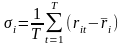 Стандартное отклонение эффективной доходности i‑ой облигации (i) определяется по формуле: