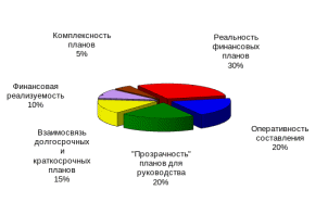 Важнейшей проблемой в этой области является реальность формируемых финансовых планов. Действительно, реальное и эффективное управление компанией возможно лишь при наличии обоснованного плана на достаточно длительный промежуток времени - год, квартал. Нереальность планов вызывается, как правило, необоснованными плановыми данными по сбыту, плановой доле денежных средств в расчетах, заниженными сроками погашения дебиторской задолженности, раздутыми потребностями в финансировании (затраты подразделений на техническое обслуживание, капитальный ремонт, общехозяйственные расходы и т.д.). В итоге, полученные ценой значительных усилий, планы не являются реальным инструментом управления, которое осуществляется по-прежнему - путем субъективного распределения оборотных средств по различным текущим статьям. Одной из ключевых причин этого факта является функциональная разобщенность подразделений, участвующих в составлении финансовых планов.
