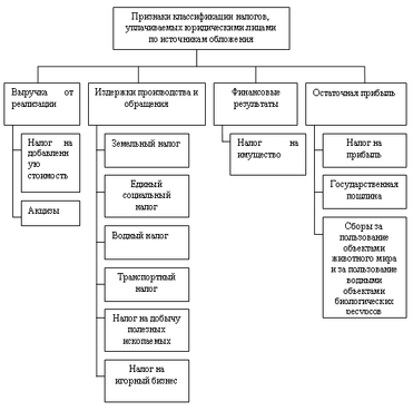 Классификация налогов в Российской Федерации, уплачиваемых юридическими лицами по источнику обложения