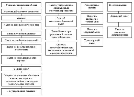 Классификация налогов Российской Федерации по принадлежности к уровню власти