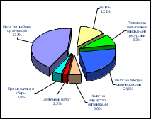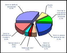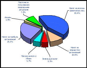 Рис. 2.10 - Поступления по основным видам налогов и сборов в бюджетную систему Российской Федерации по Сибирскому федеральному округу за 2004 г. (консолидированный бюджет) [40]