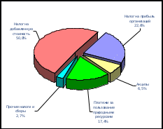 Рис. 2.11 - Поступления по основным видам налогов и сборов в бюджетную систему Российской Федерации по Сибирскому федеральному округу за 2004 г. (федеральный бюджет) [40]