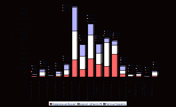 Поступления налога на прибыль организаций за 2004 г. сложились следующим образом. В целом по округу указанный налог поступил в размере 102,6 млрд руб., что составило 27,3 % от общего объема поступлений в консолидированный бюджет Российской Федерации на территории СФО. При чем в федеральный бюджет поступило – 23,6 млрд. руб. (на 50,4 % больше, чем в 2003 г.), в консолидированный бюджет субъектов федерации – 79,0 млрд руб. (на 134,7 % больше, чем по итогам предыдущего года), из них в доходы местных бюджетов – 20,7 млрд. руб. (прирост составил 52,6 %). Наибольшие суммы поступлений налога на прибыль зафиксированы в Красноярском крае и Омской области – 27,0 млрд. руб. и 20,7 млрд. руб. соответственно. Среди 16 субъектов федерации, входящих в округ, снижение объема поступлений по сравнению с 2003 г. наблюдается в Читинской области (на 29,3 %) и Республике Алтай (на 26,4 %). Наибольшие темпы роста поступлений налога на прибыль отмечены в Омской (495,7 %) и Кемеровской (343,4 %) областях.