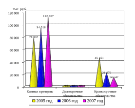 Рисунок 2.2 - Динамика изменения пассива баланса ОАО «НМУ-3» за 2005 – 2007 гг.