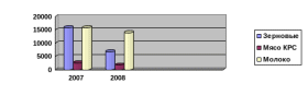 Увеличение прибыли произошло за счёт сокращения объёма производства убыточной продукции- зерна и мяса КРС. Объём их производства сократился соответственно в 2,4 и 1,5 раза.