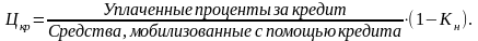 Если проценты за кредит включаются в себестоимость продукции, то действительная цена кредита будет меньше на уровень налога на прибыль (Кн).