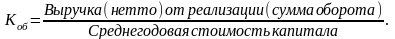 Коэффициент оборачиваемости капитала рассчитывается по формуле: