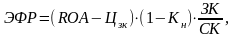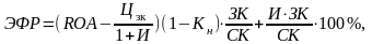 ЭФР показывает, насколько процентов увеличивается сумма собственного капитала за счет привлечения заемных средств в оборот предприятия. Положительный ЭФР возникает в тех случаях, когда рентабельность совокупного капитала выше средневзвешенной цены заемных ресурсов, т.е. если ROA > Цзк.