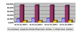 темпы роста внеоборотных активов за 3 года постепенно снижались и на 01.01.2006 г. стали 95,50%;