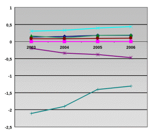 Сделаем расчёты за 2003 г., 2004 г., 2005 г.