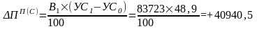 Для определения степени влияния изменения цены на изменение суммы прибыли от продажи делаем следующий расчёт: