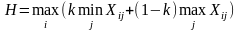 где k - коэффициент пессимизма, который принадлежит промежутку от 0 до 1 в зависимости от того, как принимающий решение оценивает ситуацию. Если он подходит к ней оптимистически, то эта величина должна быть больше 0,5. При пессимистической оценке он должен взять упомянутую величину меньше 0,5.